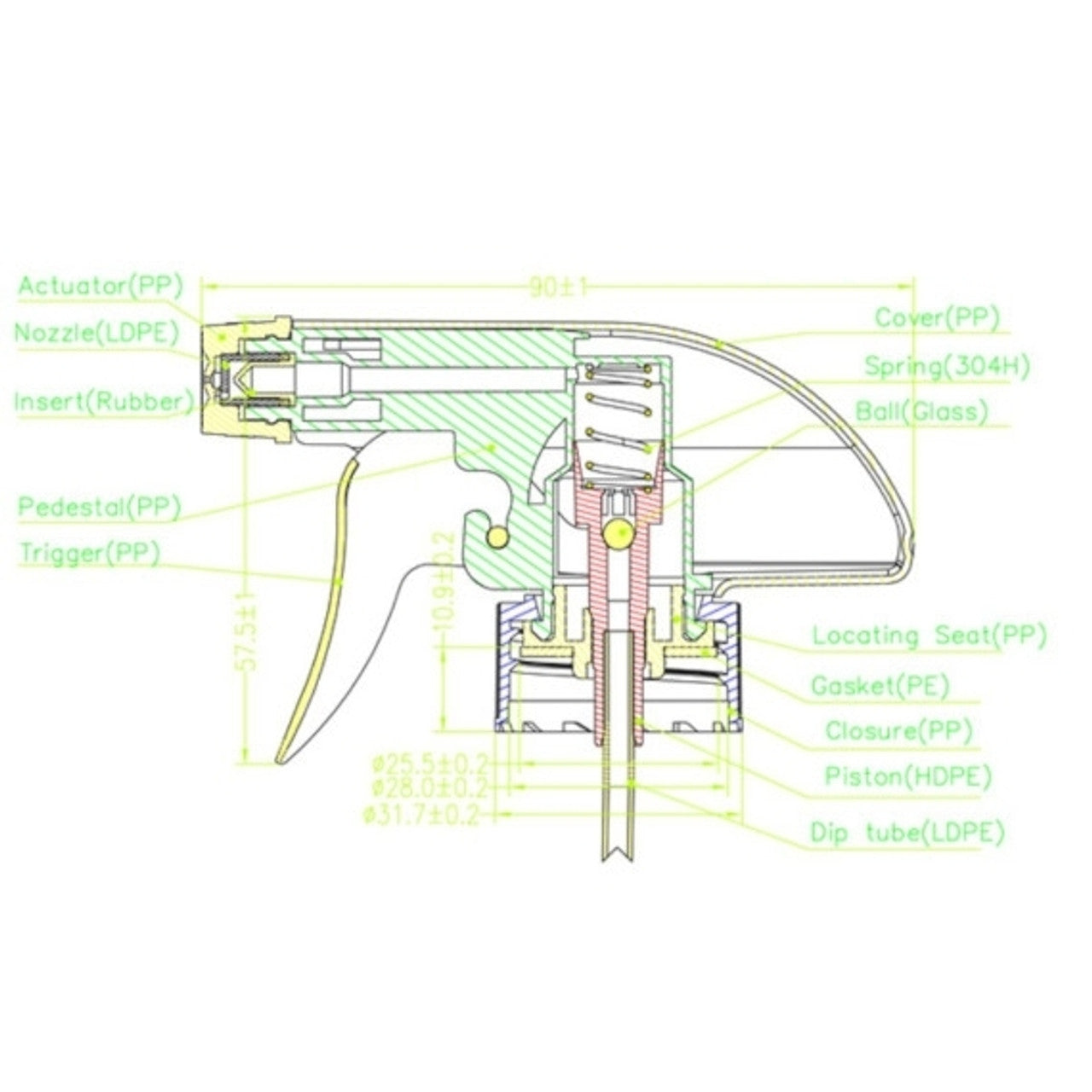 - Practical Design: Our Plastic Trigger Sprayer Caps are engineered for reliability and ease of use, guaranteeing they meet your packaging needs.